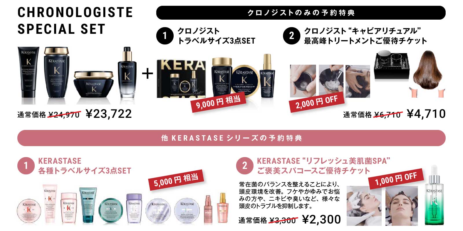 クロノロジストを始めとしたKERASTASE人気のホームケア6シリーズのセットに予約特典が付いた大変お得な限定コフレ。